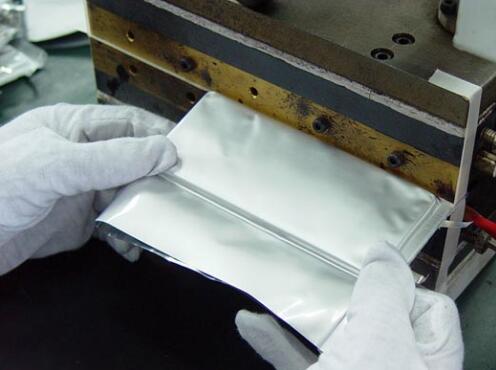 裸電芯裝入沖好的鋁塑復(fù)合膜內(nèi)封住電芯頂部開口。