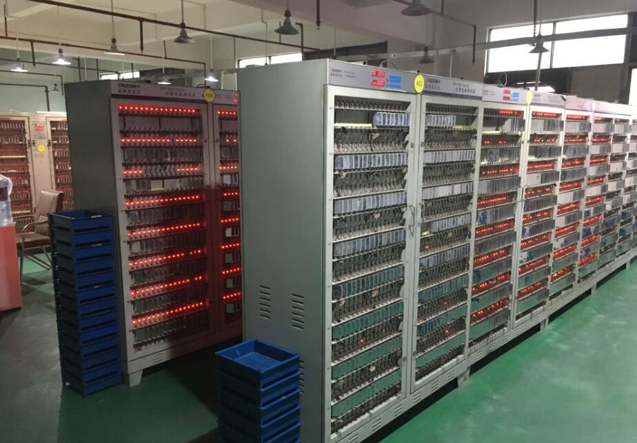用高精度的化成分容檢測設(shè)備把電池容量分選出來歸類 ,每個電池都連接電腦并時時監(jiān)測、記錄每個電池的性能指標(biāo)。